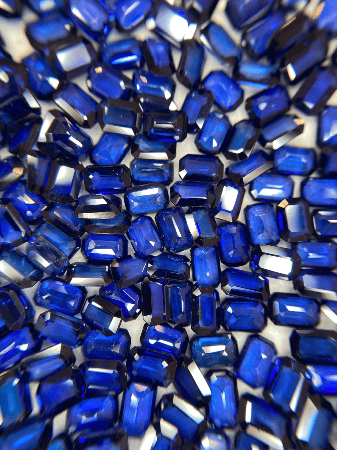 Natural sapphires with a special heat treatment process. diffused with titanium/beryllium giving it a vivid/intense blue.
